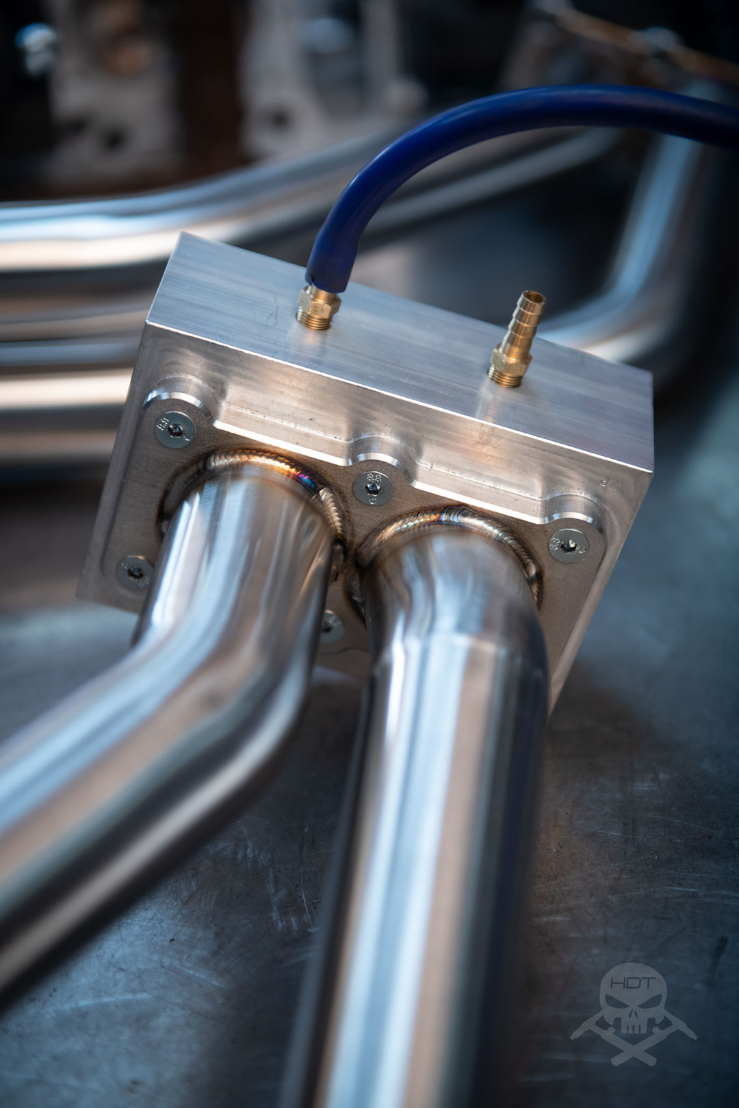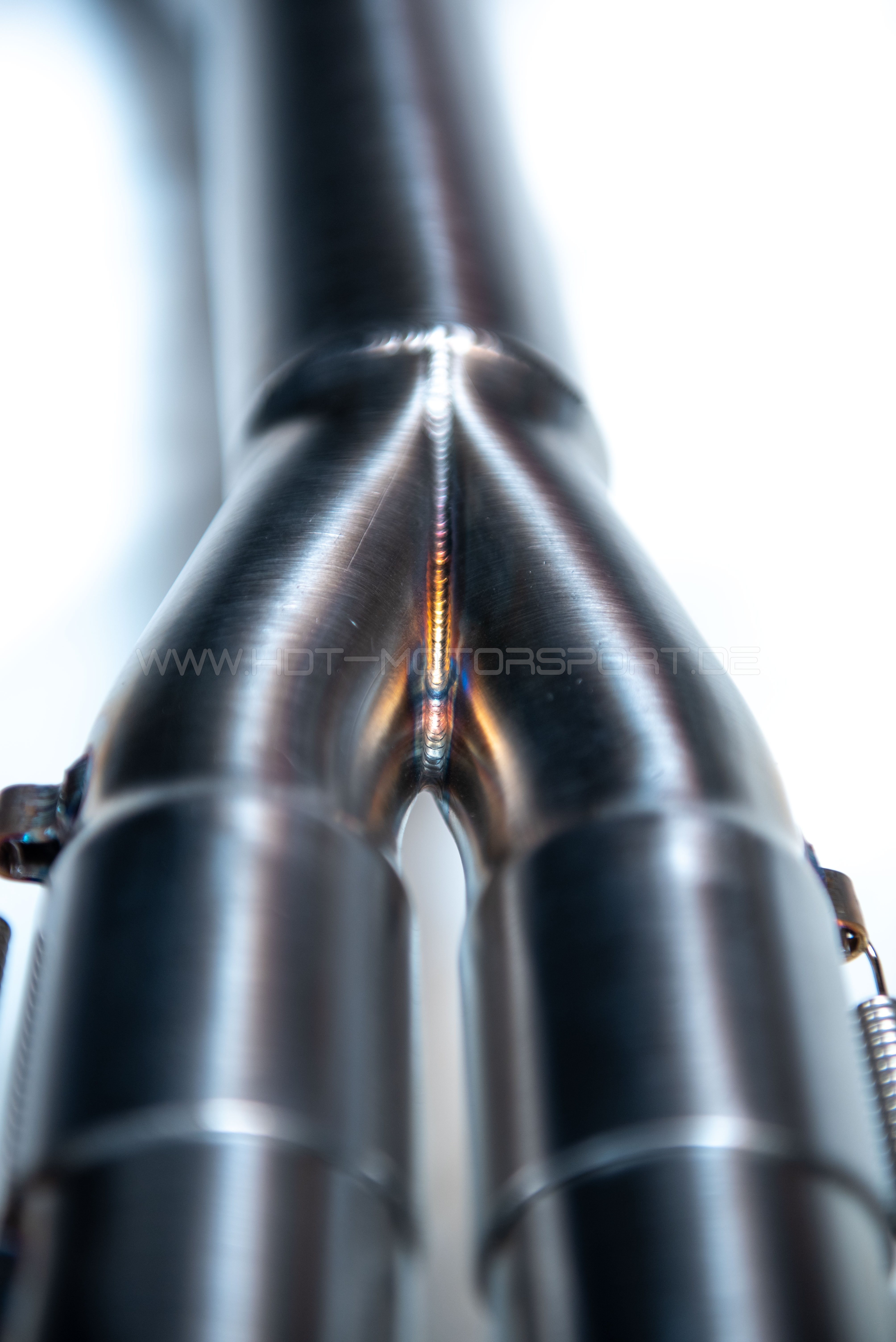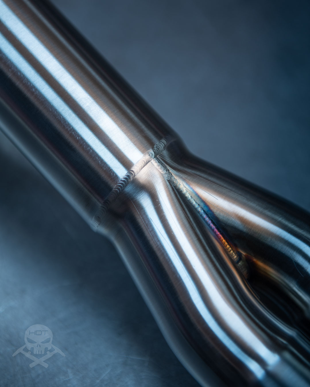 Komplett WIG geschweißt und formiert (Rohre werden während dem Schweißen mit Schutzgas gefüllt, dadurch kann das Material nicht mit Sauerstoff aus der Luft reagieren und verbrennen)