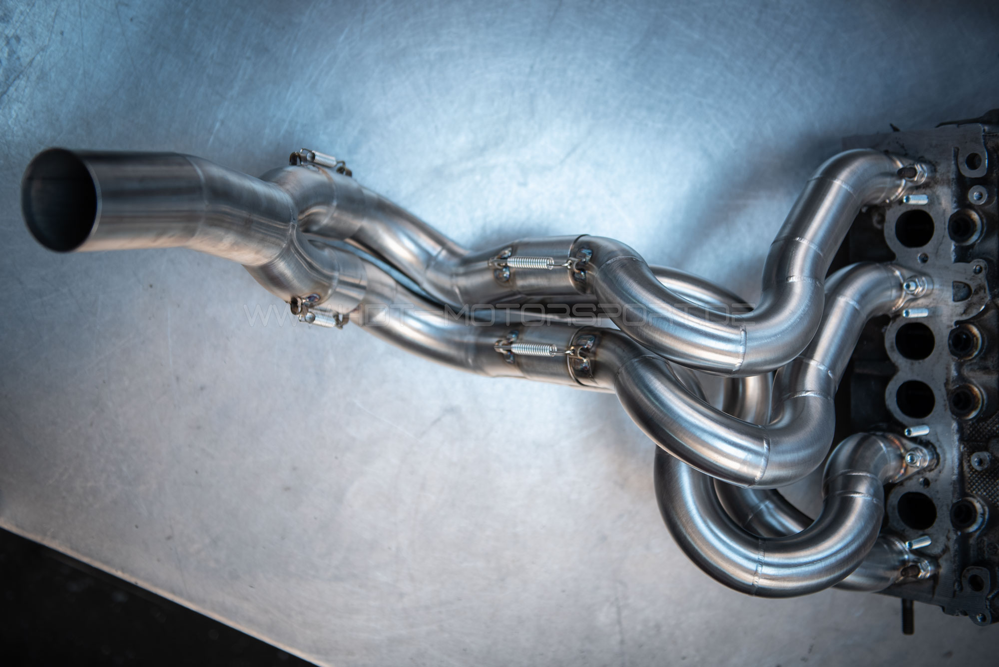 Aufwendig von uns in Handarabeit gefertigter Fächerkrümmer für 8V Motoren im Golf MK1. Gesteckte Sammler zur minimierung von Spannungsrissen beim Ausdehnen bzw. Abkühlen der Rohre, Zugefedern und durchgeschweißte sowie formierte Nähte zeichnen diesen Krümmer aus Edelstahl aus. Der Krümmer wird individuell nach der Bestellung gefertigt, sollten Sie Sonderwünsche haben kontaktieren Sie uns bitte VOR DEM BESTELLEN per eMail. Standardmäßig fertigen wir den Krümmer mit 45 mm Primärrohrdurchmesser, andere Druchmesser sind ebenfalls auf Wunsch möglich. Wir haben die Dimensionierung bereits mehrfach auf dem Leistungtsprüfstand getestet und als Ideale Basis für (Renn-)Motoren mit Doppelvergasern oder Einzeldrosselklappen mit Leistung bis 230 PS ermittelt.